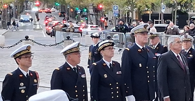 En ce jour du 15 octobre 2025, le ravivage de la flamme était confié au Service de santé des armées (SSA) et particulièrement aux élèves et anciens élèves des écoles du SSA et du Val-de-Grâce. Cette cérémonie était placée sous la présidence du MGA Jacques Margery, Directeur central du SSA, accompagné du MGA Sylvie Pérez (Bx 83), Inspectrice générale du SSA. La musique de la gendarmerie mobile était présente pour l’occasion et a animé cette manifestation qui a donné lieu à un dépôt de gerbe sur la « dalle de granite » réalisé conjointement par l’ASNOM et la SEVG (Société Amicale des élèves et anciens élèves des écoles du SSA et de l’école du Val de Grâce).