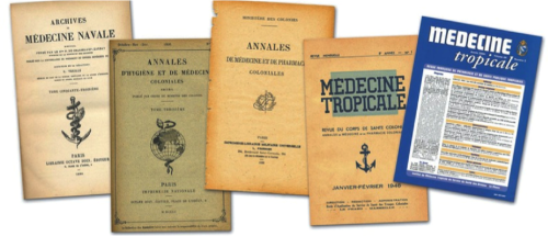 A droite, la maquette 1994 de la Revue Médecine tropicale succédant aux maquettes précédentes.