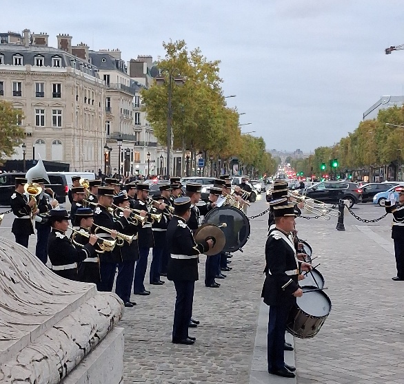 En ce jour du 15 octobre 2025, le ravivage de la flamme était confié au Service de santé des armées (SSA) et particulièrement aux élèves et anciens élèves des écoles du SSA et du Val-de-Grâce. Cette cérémonie était placée sous la présidence du MGA Jacques Margery, Directeur central du SSA, accompagné du MGA Sylvie Pérez (Bx 83), Inspectrice générale du SSA. La musique de la gendarmerie mobile était présente pour l’occasion et a animé cette manifestation qui a donné lieu à un dépôt de gerbe sur la « dalle de granite » réalisé conjointement par l’ASNOM et la SEVG (Société Amicale des élèves et anciens élèves des écoles du SSA et de l’école du Val de Grâce).